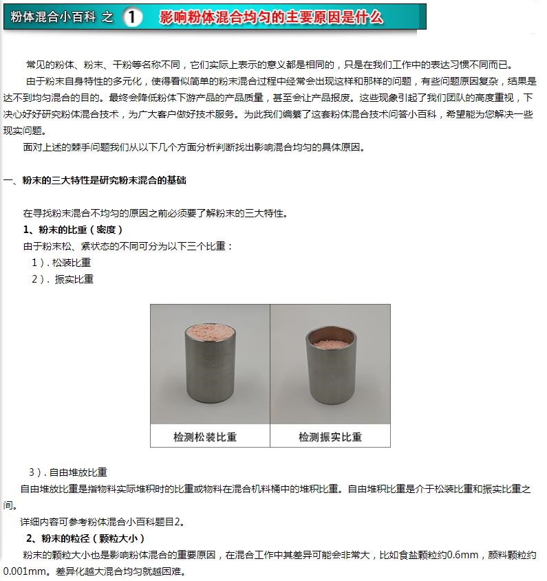 解決方法是混合之前要針對(duì)這樣的粉體做相應(yīng)的混前預(yù)處理。詳細(xì)內(nèi)容參見(jiàn)粉體混合小百科題目7.