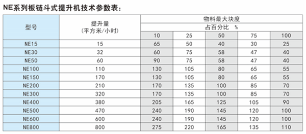 NE系列板鏈斗式提升機(jī)是一種新型的斗式提升機(jī),其采用板鏈傳動(dòng),區(qū)別于老型號(hào)TB系列板鏈斗式提升機(jī),其命名方式采用提升量而命名而非斗寬。如NE150指的是提升量為150噸一小時(shí)而不是斗寬150。NE系列斗式提升機(jī)有著很高的提升機(jī)效率,根據(jù)提升速度不同還分有NSE型號(hào)及高速板鏈斗式提升機(jī)。