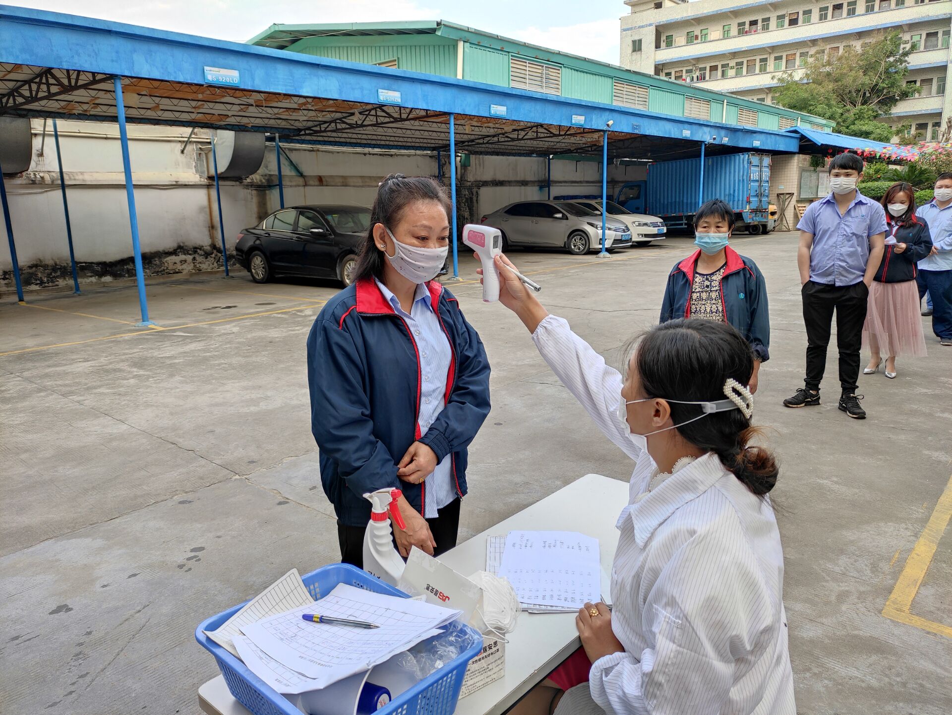 每天早上盧經(jīng)理給每位上崗人員量測(cè)體溫