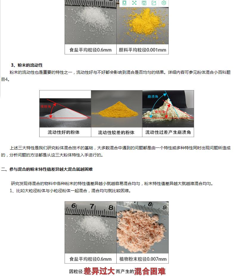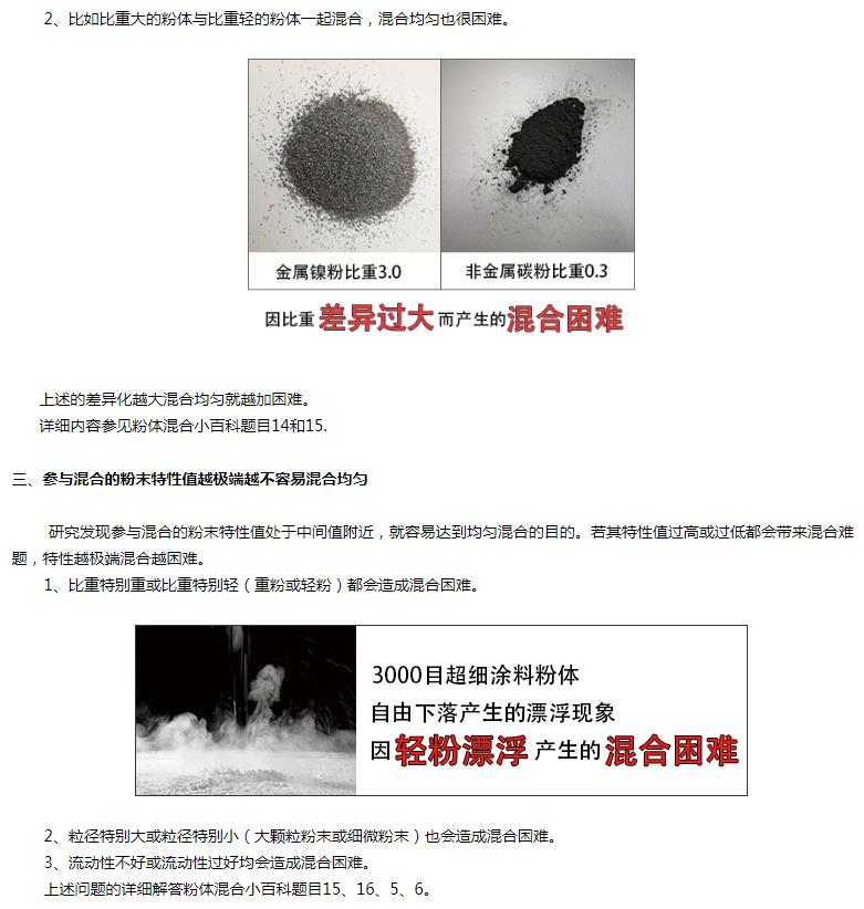 有些粉體因?yàn)槌睗?、粘性過(guò)大、含有不易分散的假顆粒、含有纖維束狀物質(zhì)等等均會(huì)造成混合困難。