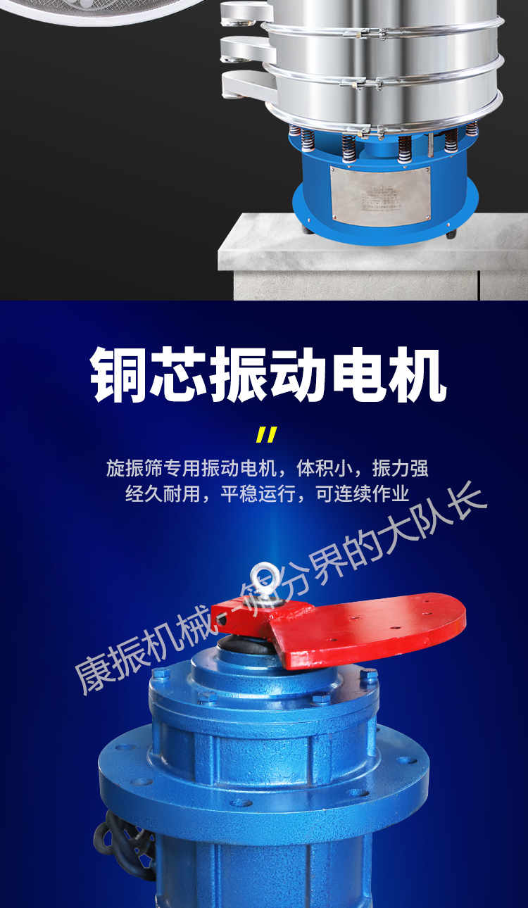 振動無機械傳導—旋振篩的新型振動源產(chǎn)生的三次元振動強大而平穩(wěn),設備可安裝到任何所需位置且便于移動。