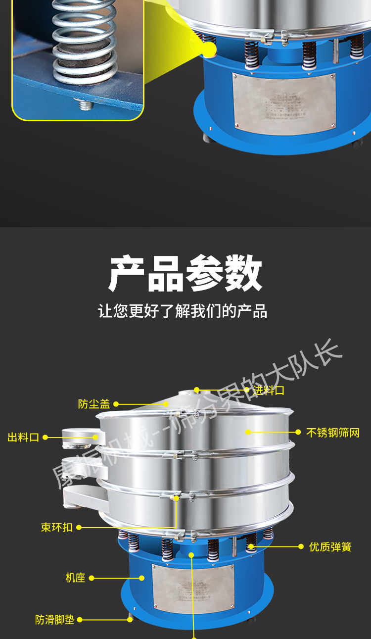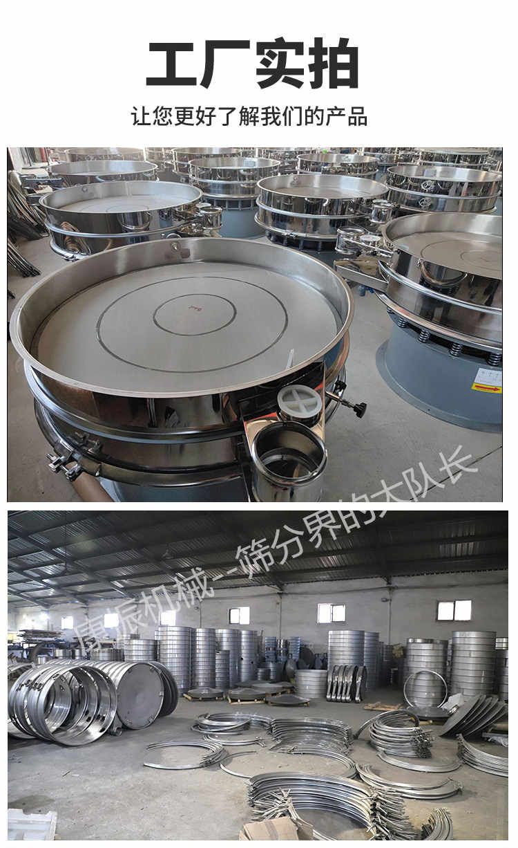 2、去液體:本設備單層、多層使用,可十分有效地處理固體、液體的混合物料??焖賹崿F(xiàn)固液分離,并篩選過濾出不同的目的物料。